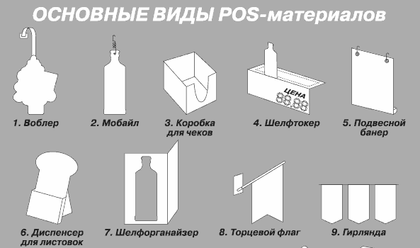 Существует огромное разнообразие POS-материалов. Наиболее популярные мы изготавливаем на нашем производстве. Вся наша продукция изготавливается из пластика. Печать на пластике дороже картонных аналогов, однако более солидный и презентабельный вид позволяет добиться большего экономического эффекта. При этом надо учитывать, что пластиковые POS продукты не меняют форму и работают в магазинах десятилетиями.