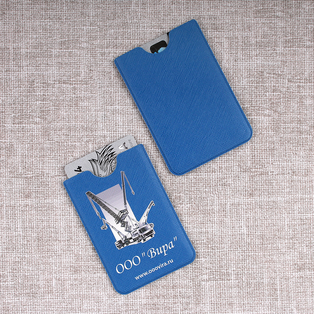 Чехол для стандартной пластиковой карты из экокожи с полноцветной печатью или тиснением.