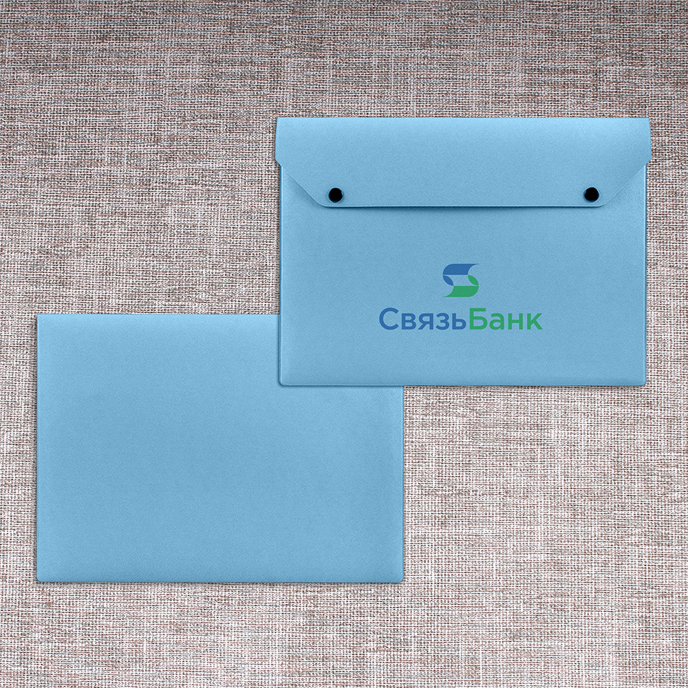 Оригинальная папка из экокожи с 2-мя кнопками c полноцветной печатью или тиснением.