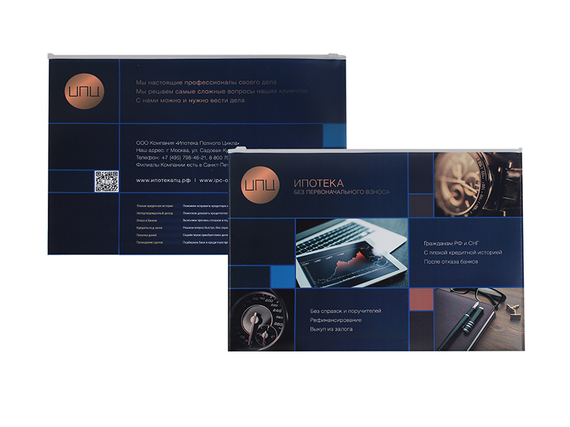Мы предлагаем вашему вниманию папки на молнии Zip-Lock, которые надёжно защитят ваши документы от воды, пыли и других загрязнений. Наша компания выполняет заказы по нанесению брендовых логотипов на печатную продукцию. Благодаря использованию новых технологий в работе и индивидуальному подходу к каждому клиенту, мы можем создавать уникальную продукцию. Полноцветная печать обеспечивает чёткость и яркость картинки, а внешний вид такого изделия становится очень презентабельным и неповторимым.